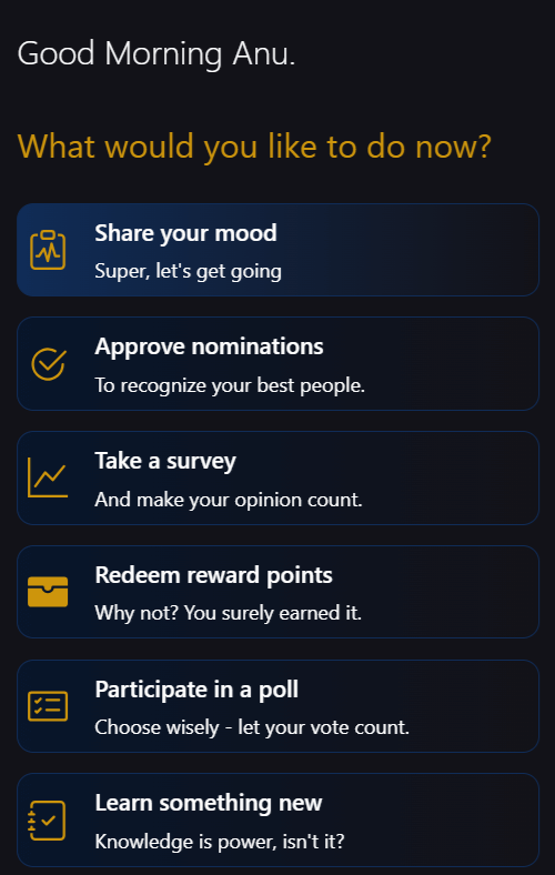 The Moodometer gives employees a direct channel to express their emotions and sentiments honestly.